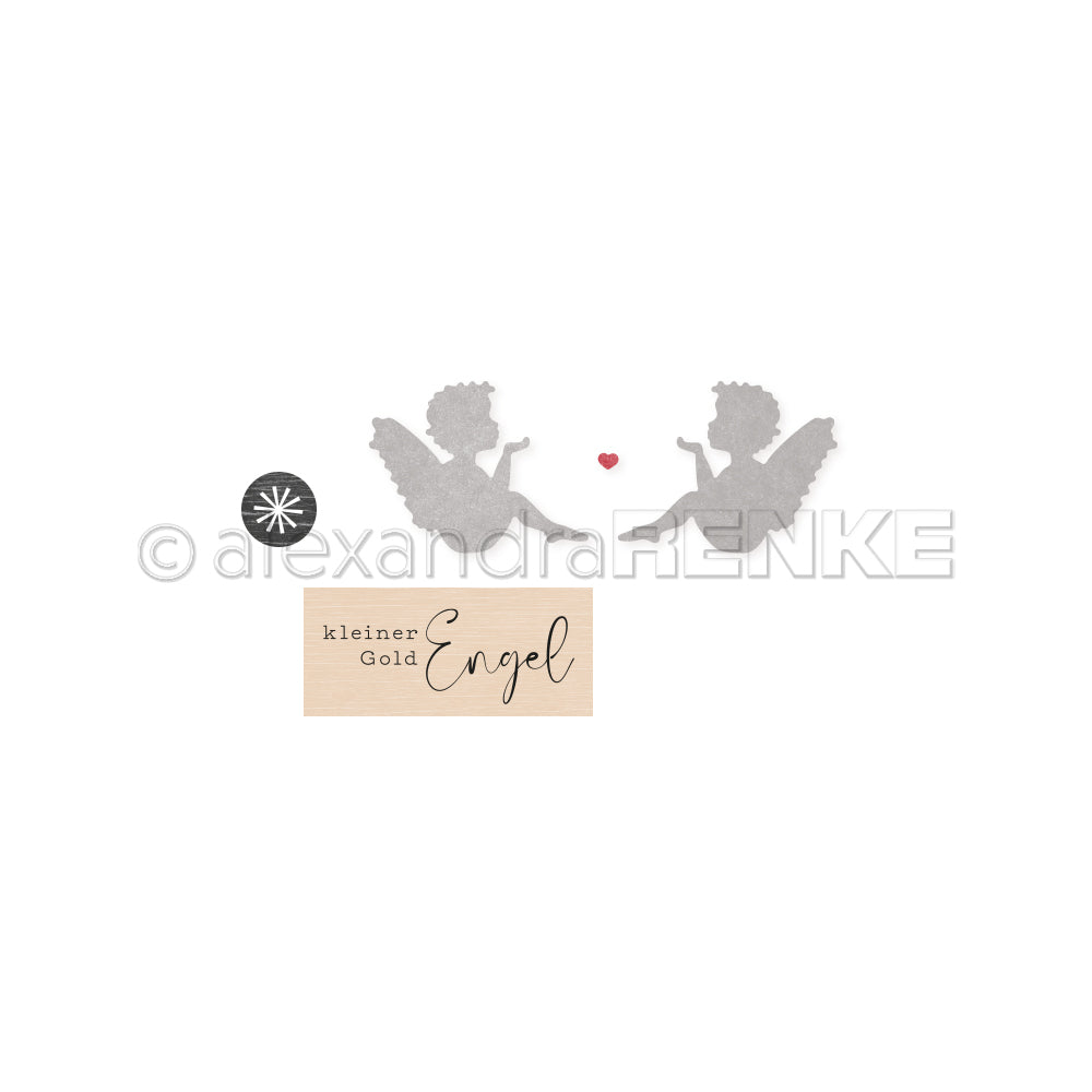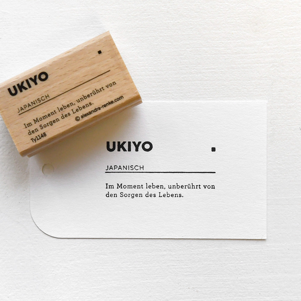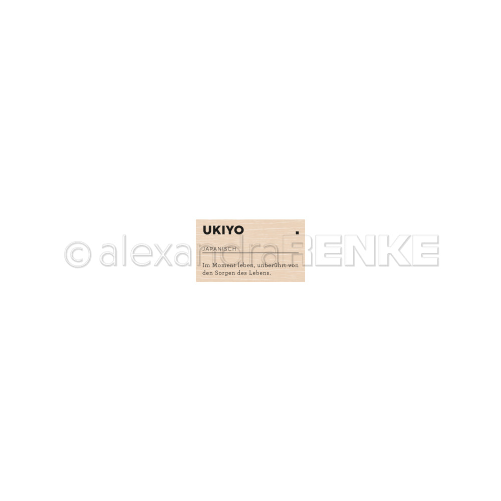 Ein Holzstempel von Alexandra Renke und ein Papier mit der Aufschrift HOPPELIGE HASENGRÜSSE in schwarzen Buchstaben - ideal für kreative Papierprojekte.