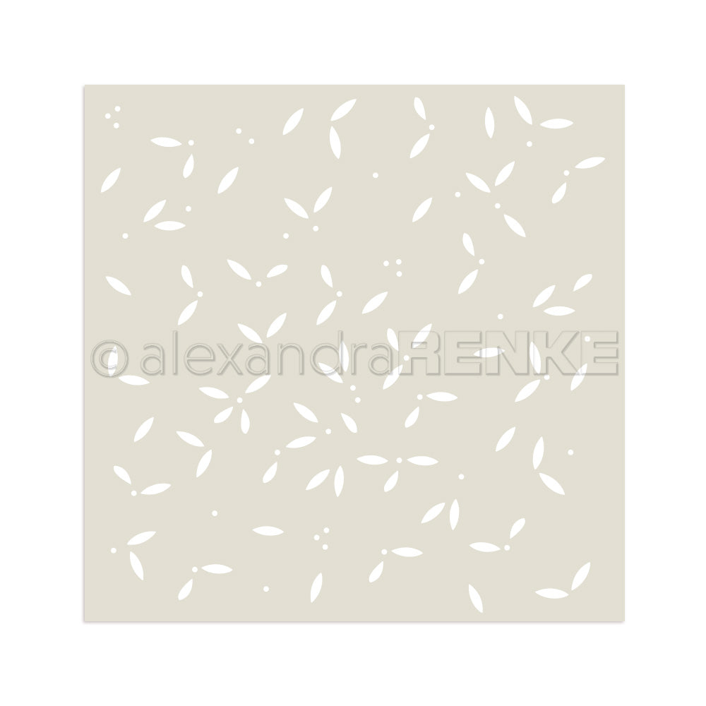 Eine weiße Tannenbaum-Silhouette, inspiriert von einem Stencil-Tannenbaum, steht in einem quadratischen Rahmen auf hellem Beige - ein stilvolles Design von Alexandra Renke Schablone, das sich perfekt für kreative oder wiederverwendbare Projekte eignet.
