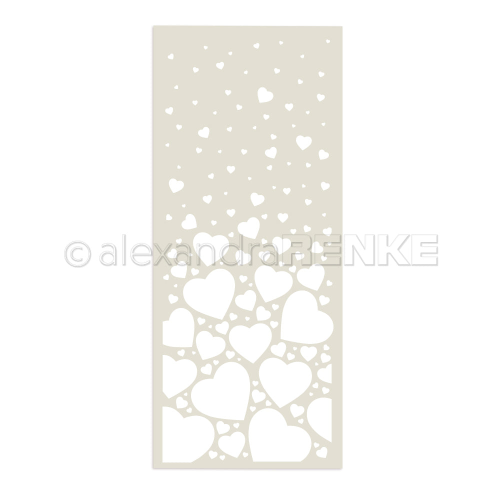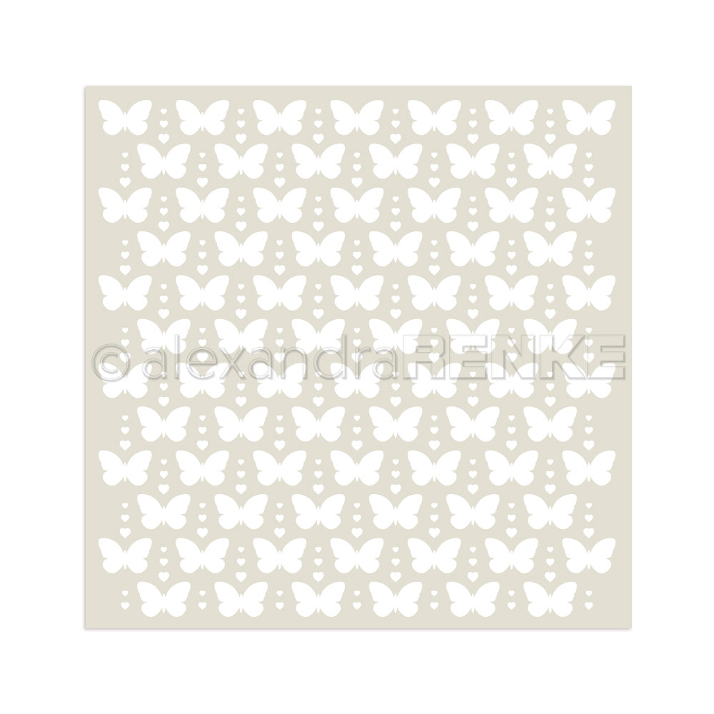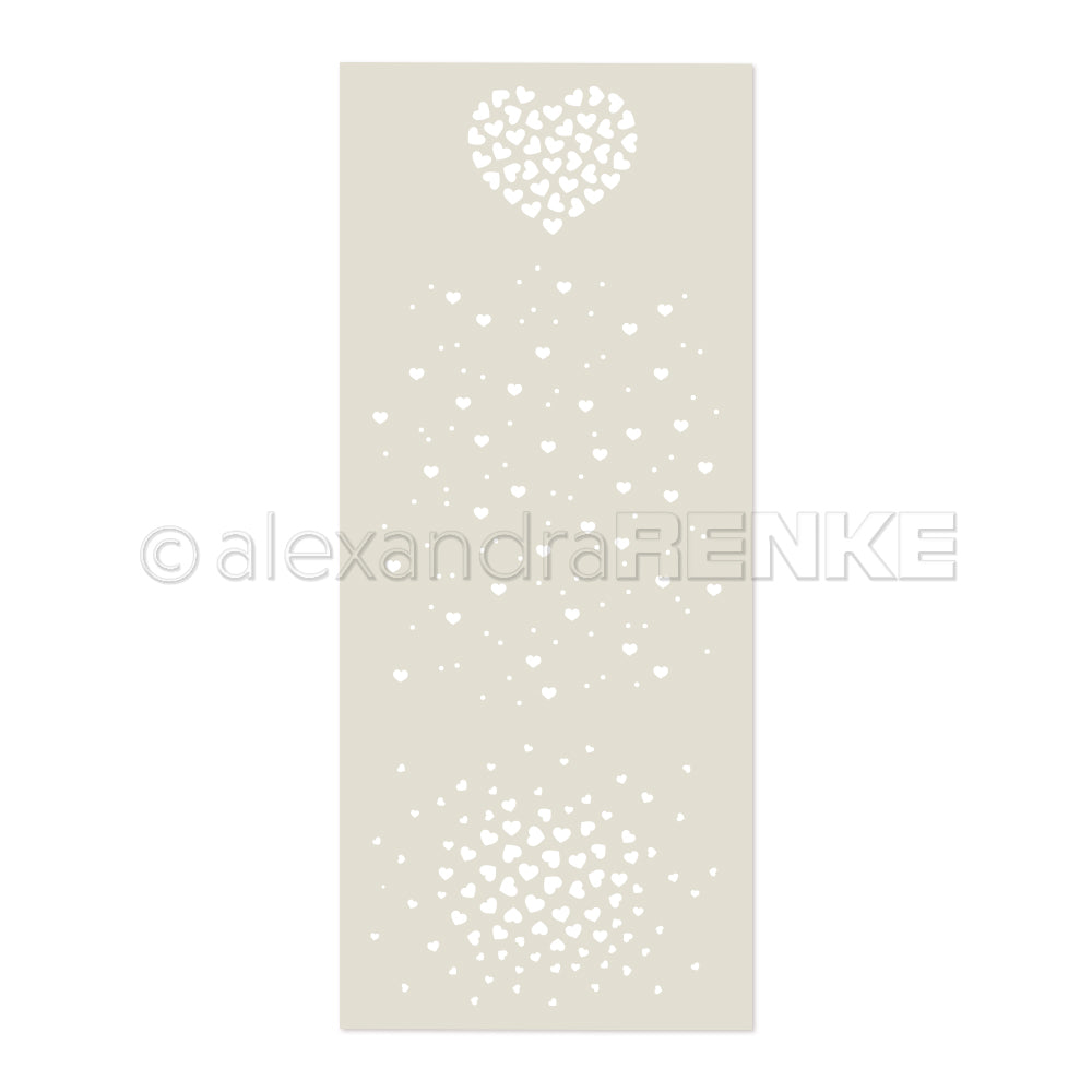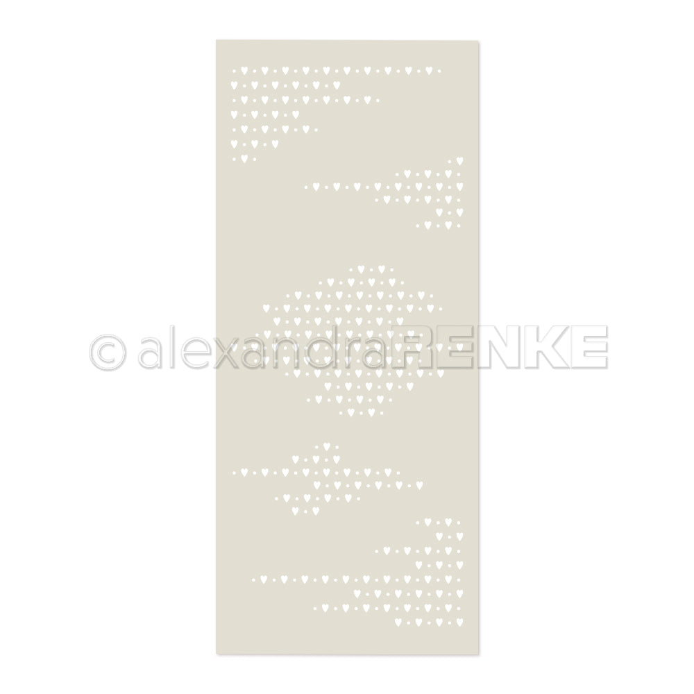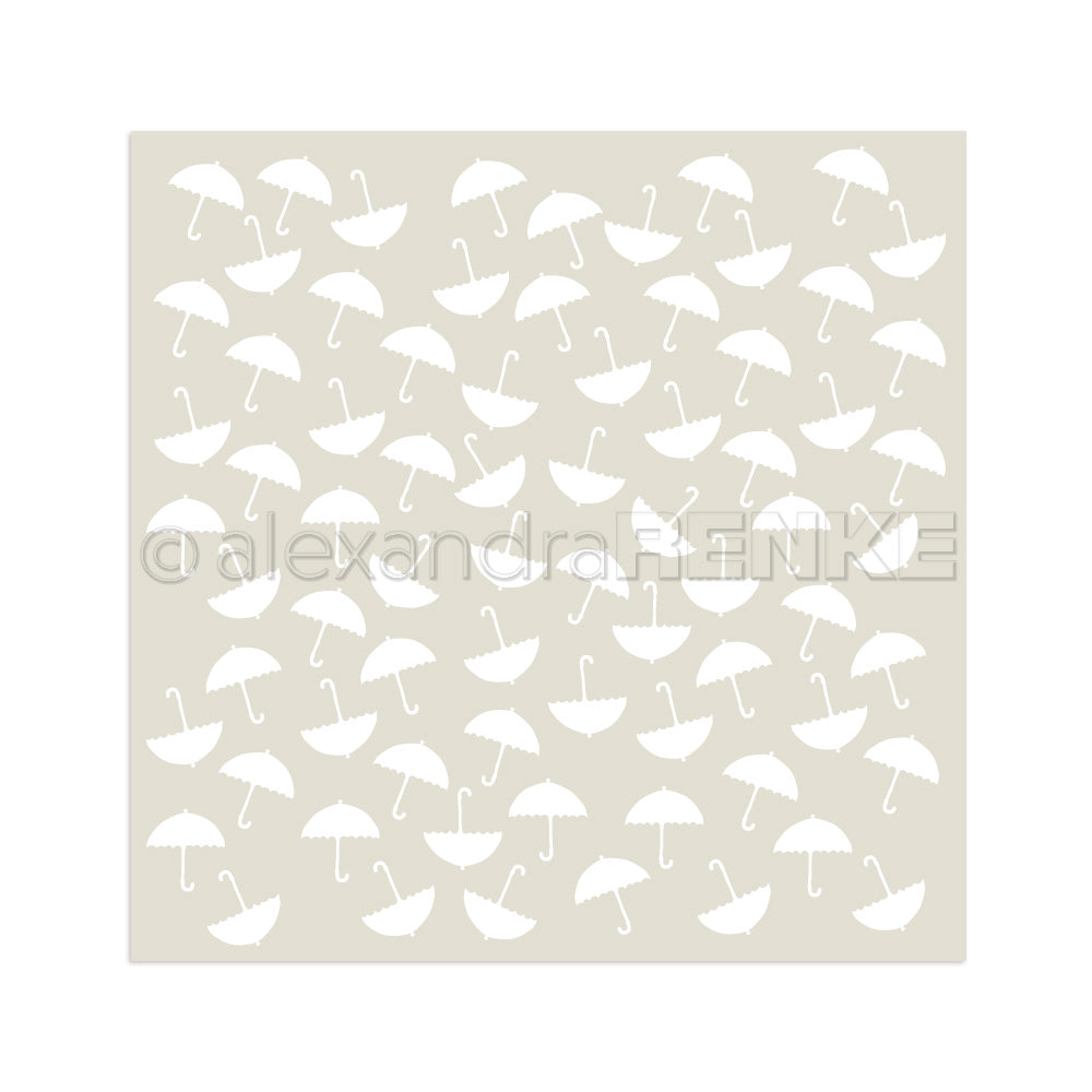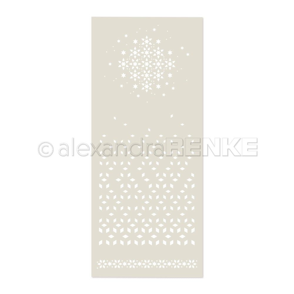Beige Karte von Alexandra Renke mit deutschen Sprüchen in weißer Schrift wie "Wundertüte" und "Geburtstagskind", gestaltet mit Kreativität und eleganten Schablonen.