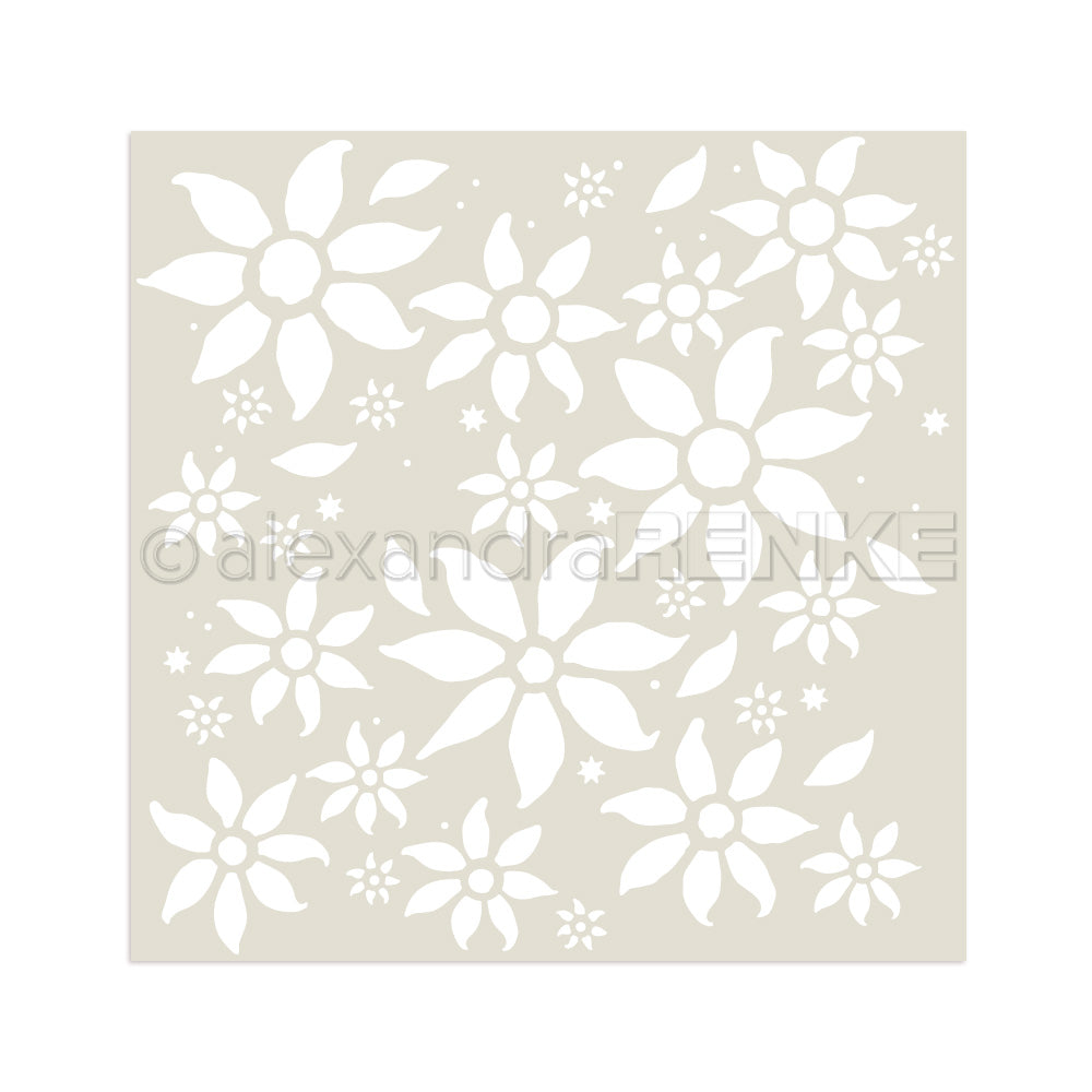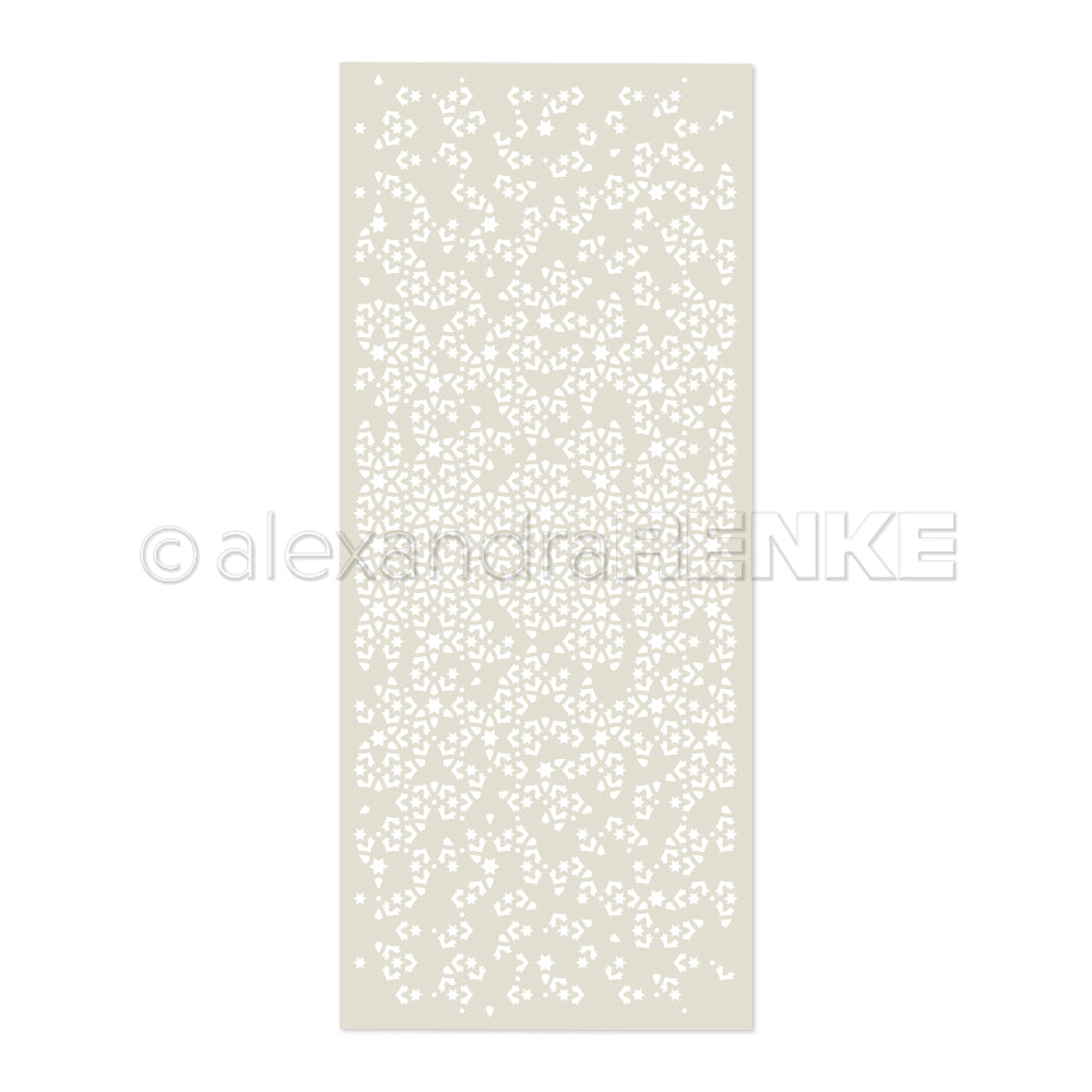 Weiße Fußabdrücke in verschiedenen Richtungen auf Beige bilden ein verspieltes Muster - ideal als Alexandra Renke wiederverwendbare Schablone Zauberhafte Wichtelspuren für Schablone Papierprojekte und kreative Bastelarbeiten.