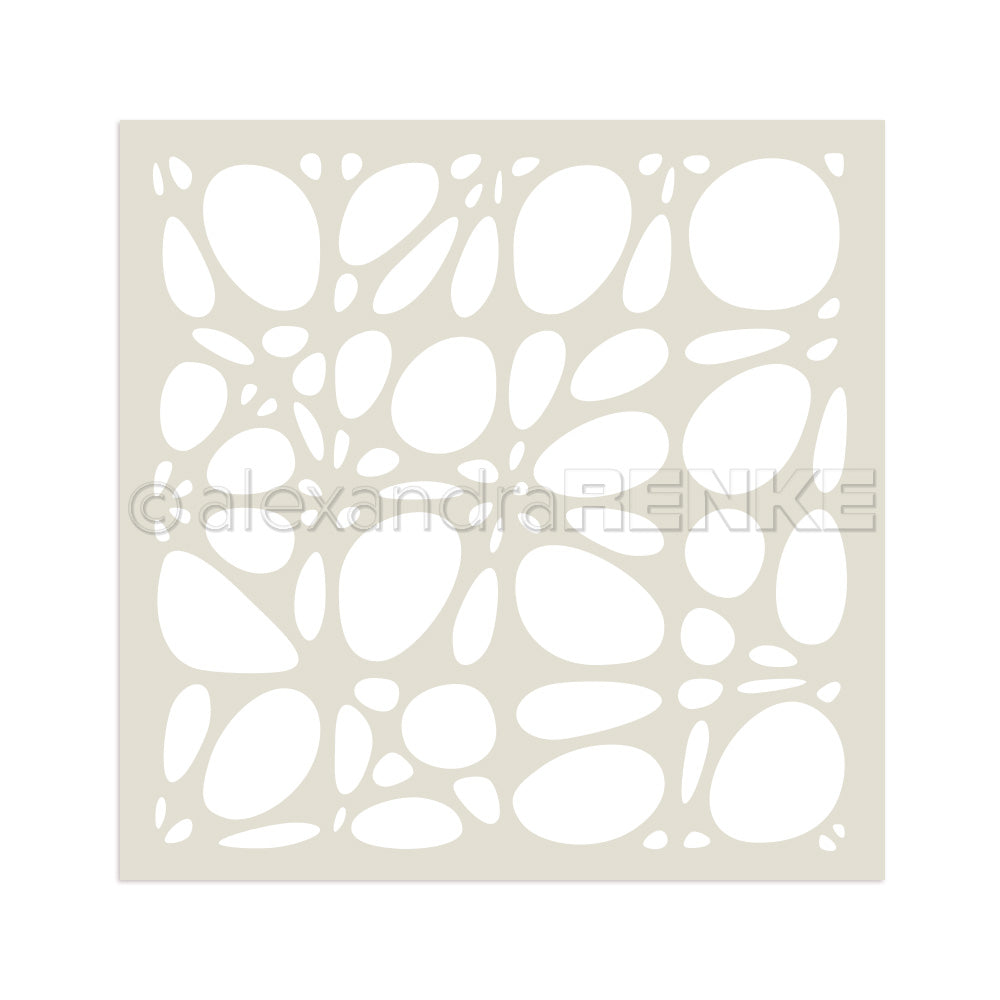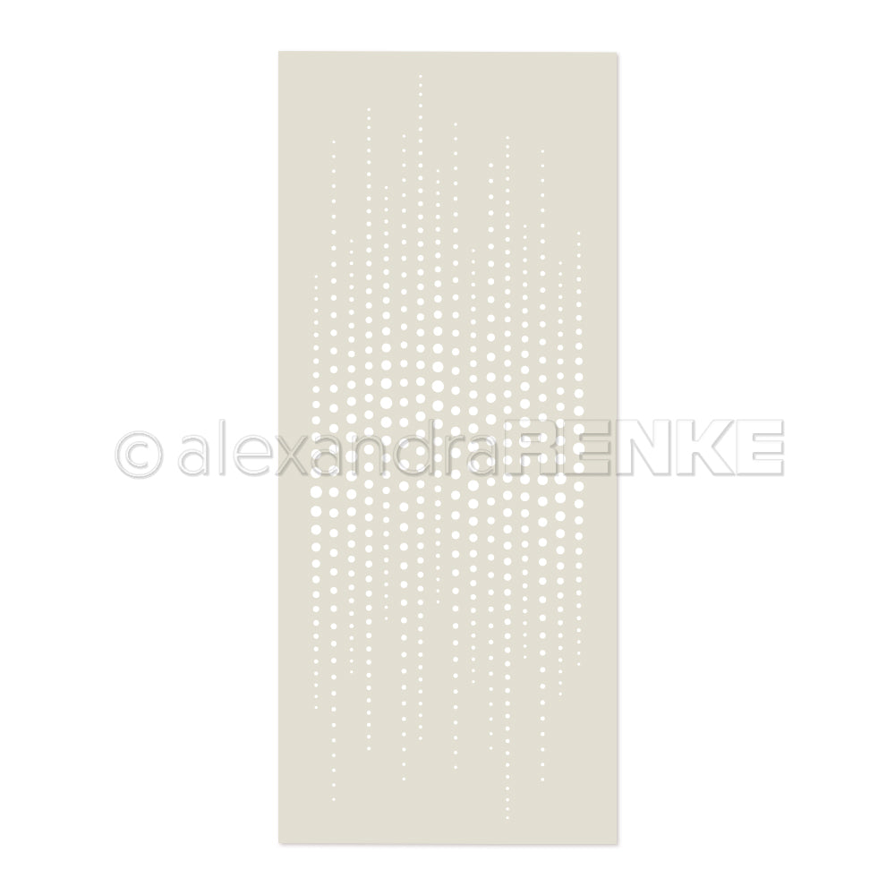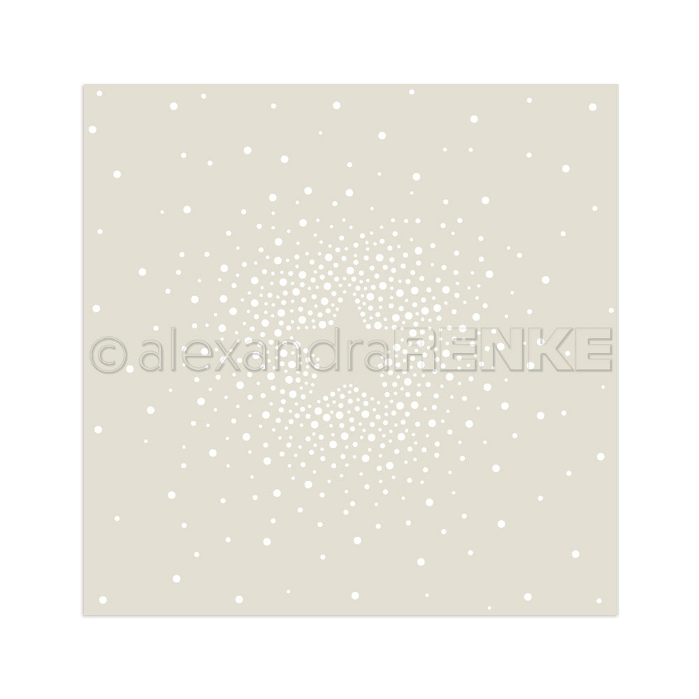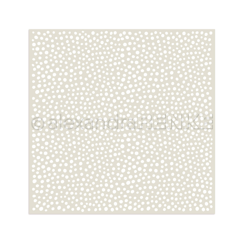 Beigefarbenes Quadrat mit konzentrischen Kreisen aus weißen Punkten, hergestellt mit der Schablone "Punktestrudel quadrat" von Alexandra Renke - das perfekte kreative Bastelzubehör. Die Punkte werden zu den Rändern hin immer größer und sorgen so für einen einzigartigen Designeffekt.