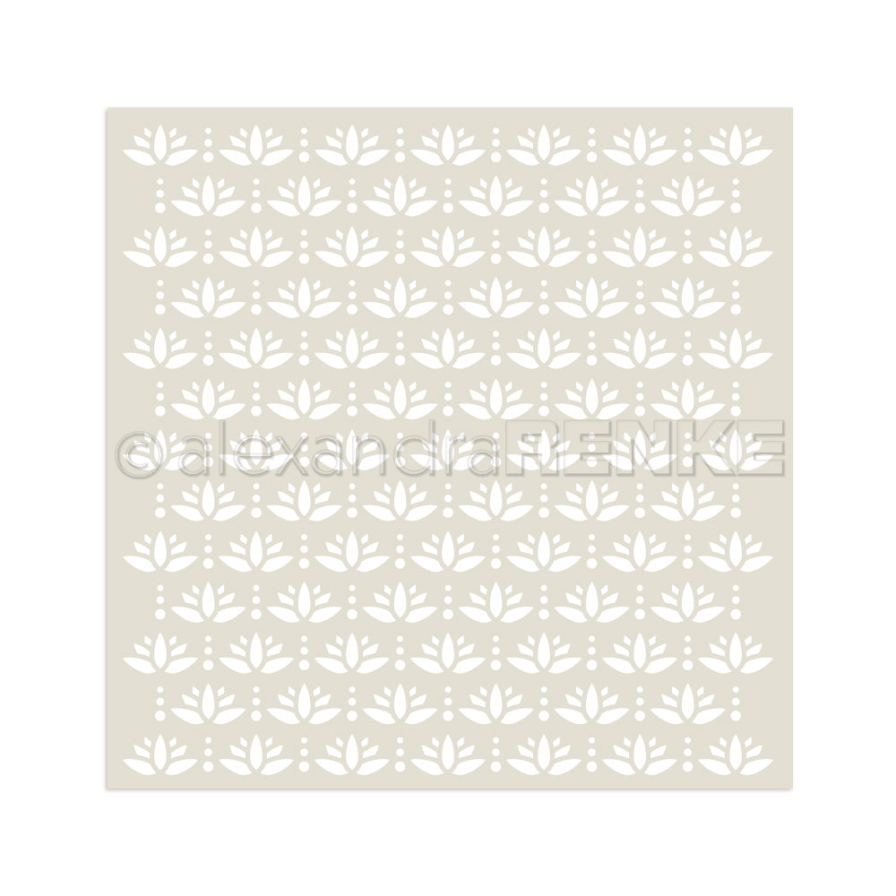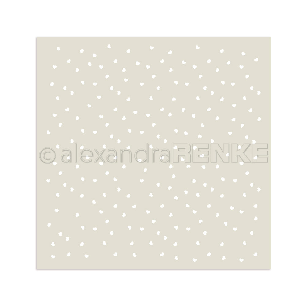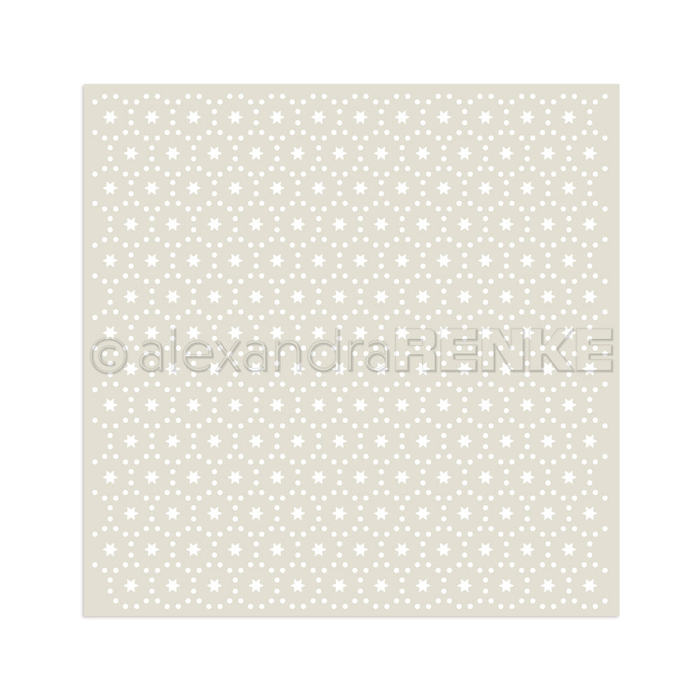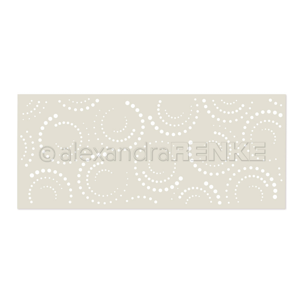 Beigefarbenes Quadrat mit konzentrischen Kreisen aus weißen Punkten, hergestellt mit der Schablone "Punktestrudel quadrat" von Alexandra Renke - das perfekte kreative Bastelzubehör. Die Punkte werden zu den Rändern hin immer größer und sorgen so für einen einzigartigen Designeffekt.
