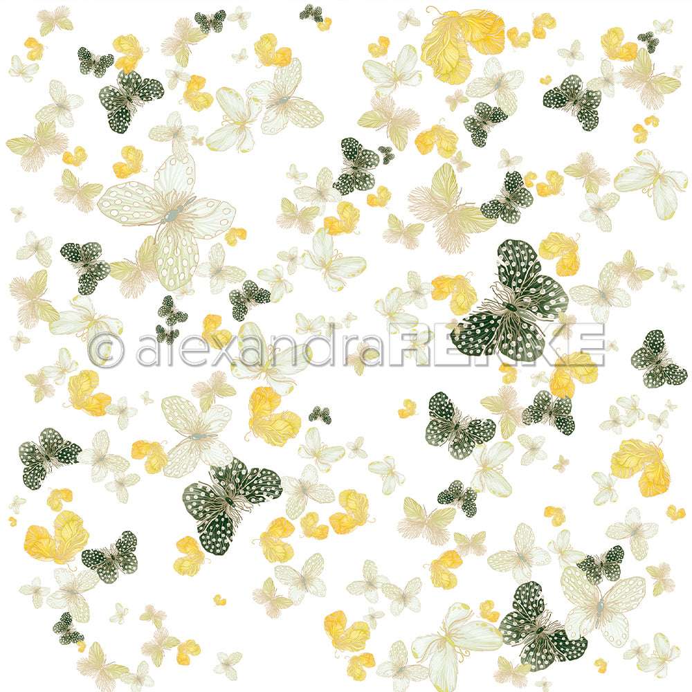 Bucheinbandpapier 'Getümmel Schmetterlinge Mint Gelb Dunkelgrün' 120 g/m²