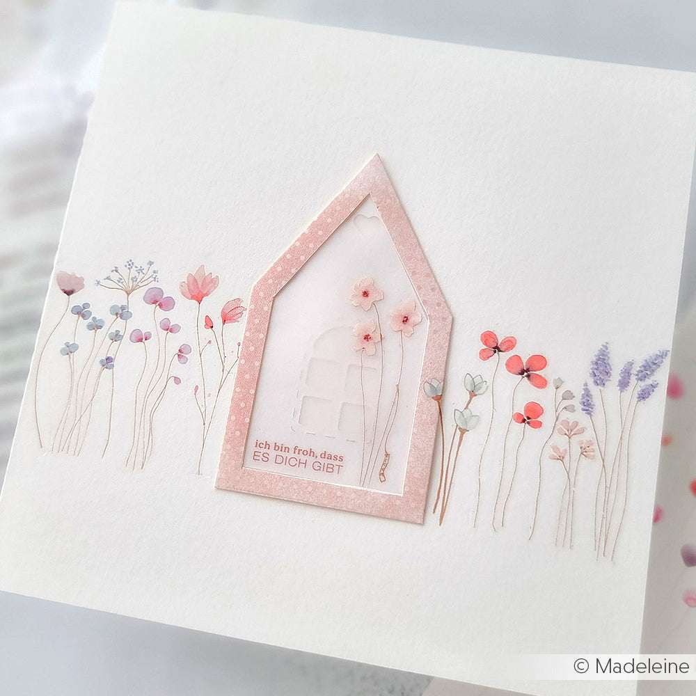 Mit unserer Motivstanze 'Großes Häuschen' lassen sich in Kombination mit unserem Papier, unseren Stempeln, wie auch Sticker-Streifen wundervolle Akzente setzen.