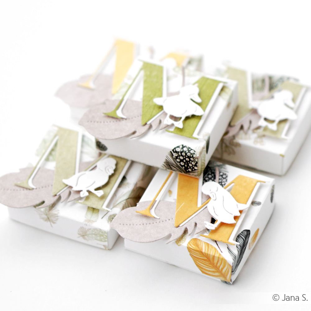 Mit unserer Motivstanze 'Mini Küken Set 1' lassen sich in Kombination mit unserem Papier, unseren Stempeln, wie auch Sticker-Streifen wundervolle Akzente setzen.