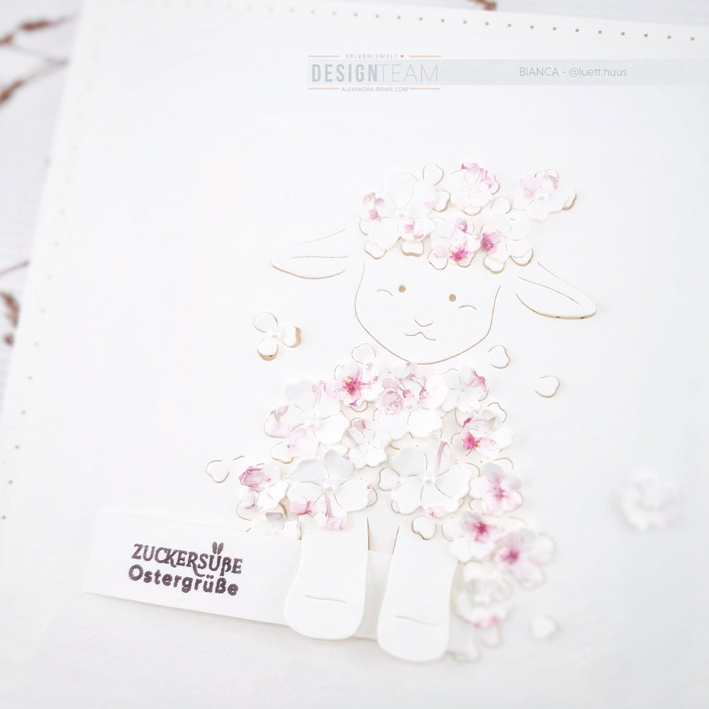 Mit unserer Motivstanze 'Negativ-Lämmchen mit Blumen' lassen sich in Kombination mit unserem Papier, unseren Stempeln, wie auch Sticker-Streifen wundervolle Akzente setzen.