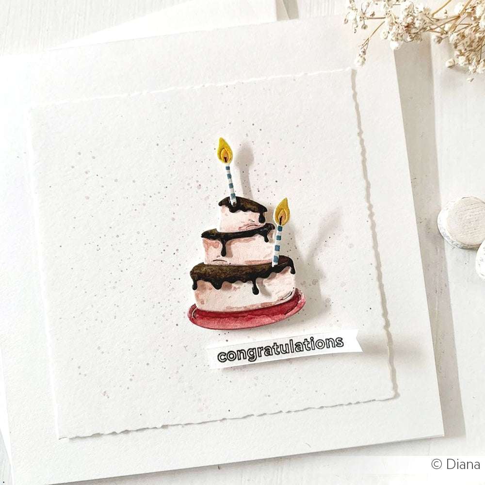 Mit unserer Motivstanze 'Torte mit Kerzen' lassen sich in Kombination mit unserem Papier, unseren Stempeln, wie auch Sticker-Streifen wundervolle Akzente setzen.
