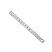 Handliches Lineal aus rostfreiem Edelstahl mit 0-Punkt an der Außenkante, mit mm- und ½mm-Teilung und mit Aufhängloch.