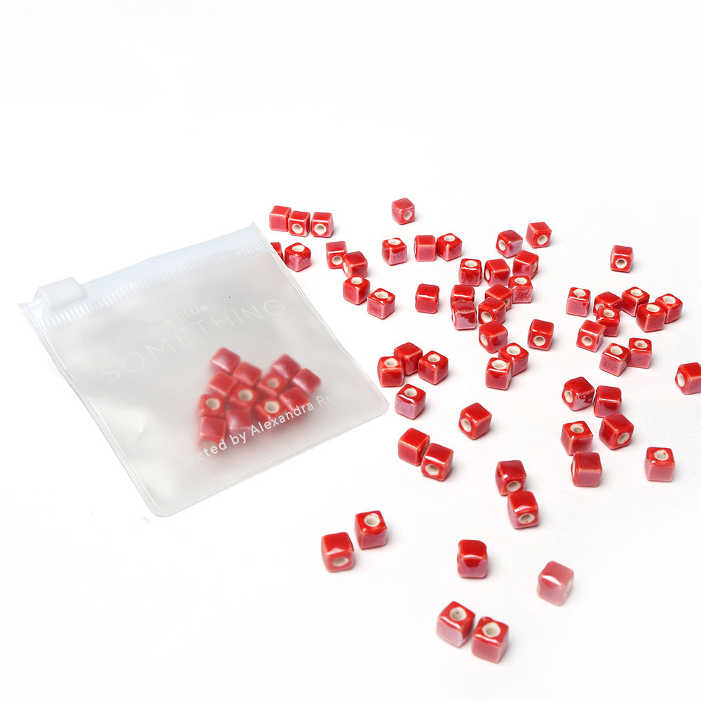 Glasierte Keramikperlen 'Leuchtend Rot' eckig
