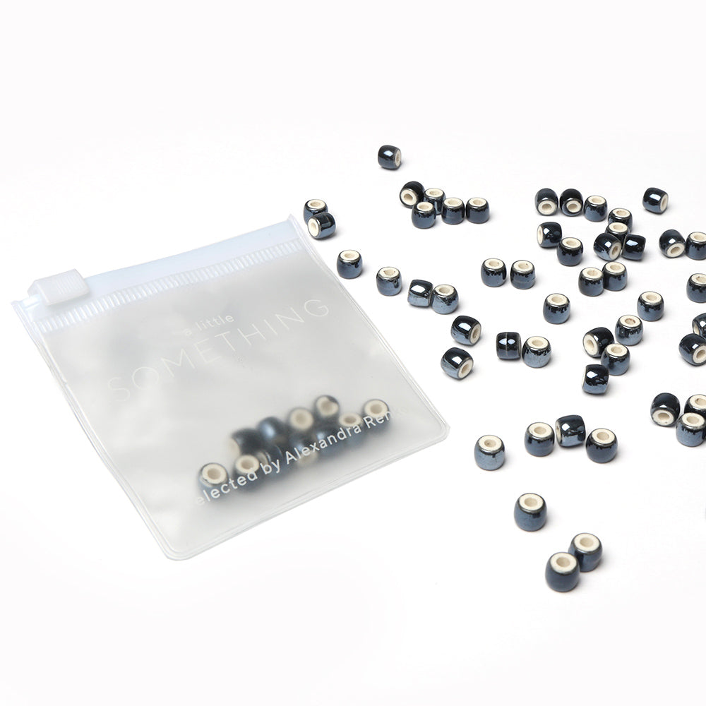 Glasierte Keramikperlen 'Stahlblau' rund