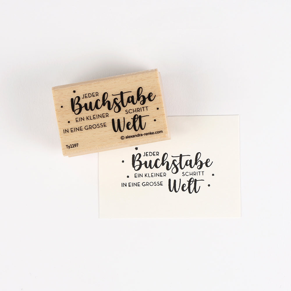 Holzstempel 'Jeder Buchstabe ein kleiner Schritt'