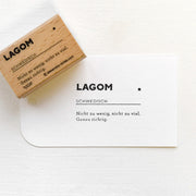 Mit unserem Holzstempel 'Lagom' könnt ihr wundervolle Akzente setzen oder eure Papierprojekte mit detailreichen Motiven und Grüßen ausstatten.