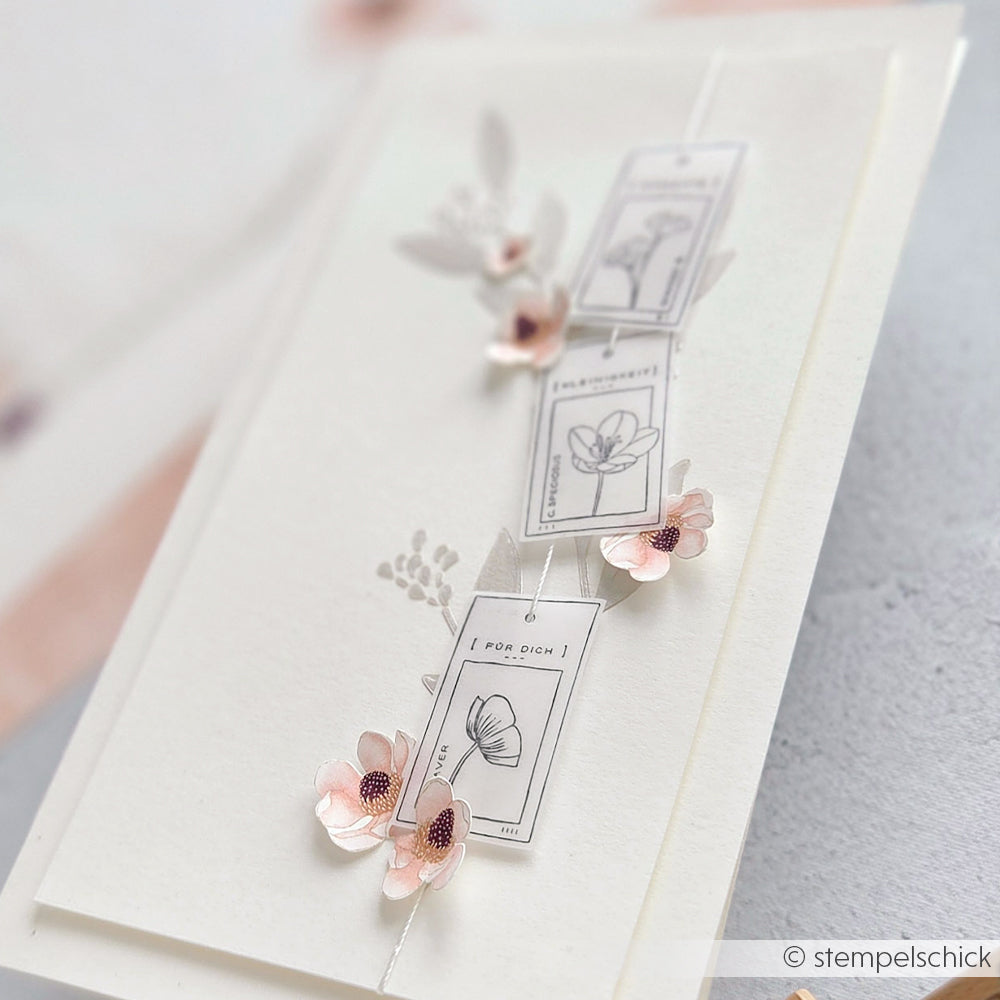 Mit unserem Holzstempel 'Mohnblume im Farbkärtchen' könnt ihr wundervolle Akzente setzen oder eure Papierprojekte mit detailreichen Motiven und Grüßen ausstatten.