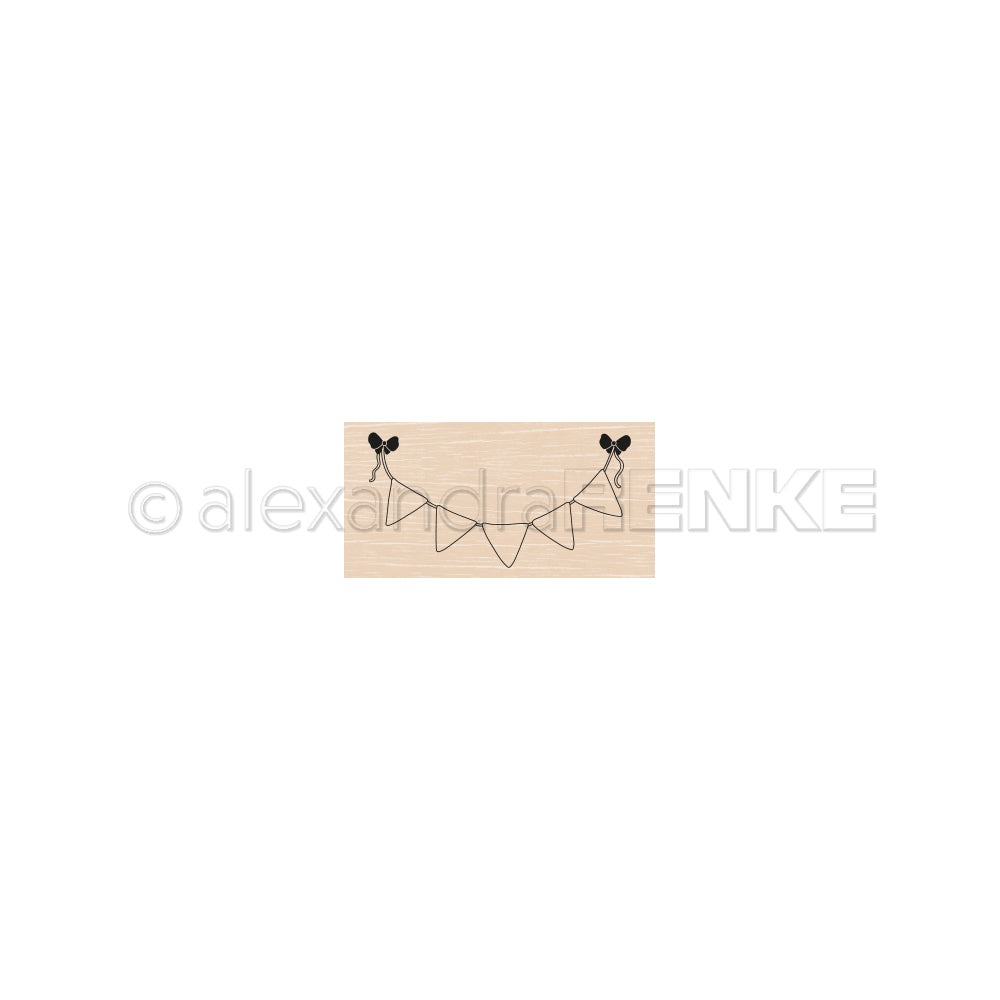 Mit unserem Holzstempel 'Partyfähnchen mit Schleifen' könnt ihr wundervolle Akzente setzen oder eure Papierprojekte mit detailreichen Motiven und Grüßen ausstatten.