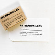 Mit unserem Holzstempel 'Retrouvailles' könnt ihr wundervolle Akzente setzen oder eure Papierprojekte mit detailreichen Motiven und Grüßen ausstatten.