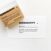 Mit unserem Holzstempel 'Serendipity' könnt ihr wundervolle Akzente setzen oder eure Papierprojekte mit detailreichen Motiven und Grüßen ausstatten.